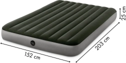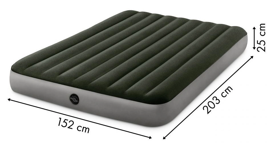 Az INTEX velúr matrac, mérete 203 x 152 x 25 cm, ideális pihenésre otthon és utazás közben. Tartós PVC anyagból készül, a felső réteg puha és kellemes tapintású, vízálló velúr felület borítja. A visszafogott és kellemes zöld szín bármely belső térbe illik.