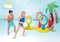 A vizes játék korongokkal remek szórakozás a gyerekeknek a nyári napokon a vízparton. Ez a felfújható játék sok órányi örömet és mozgást biztosít a friss levegőn.