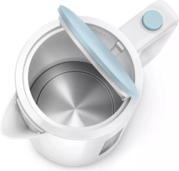 A praktikus átlátszó jelző a forraló oldalán pontos vízszintmérést tesz lehetővé, ami energiát és vizet takarít meg. A nagy nyílású, gombbal könnyen nyitható fedél megkönnyíti a forraló feltöltését és tisztítását.