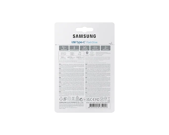 Ellenálló anyagokból készült, a Samsung USB flash meghajtó vízálló, ütésálló, valamint ellenáll a mágneses mezőknek, hőmérsékletnek és röntgensugaraknak.