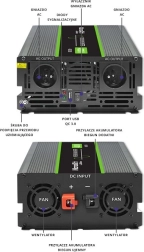 A USB portnak köszönhetően töltheti mobil eszközeit, a szabványos 230 V-os aljzatok pedig az átalakító teljesítményén belül a legtöbb fogyasztót kiszolgálják. A masszív alumínium ház aktív hűtéssel megbízható működést és hosszú élettartamot biztosít.