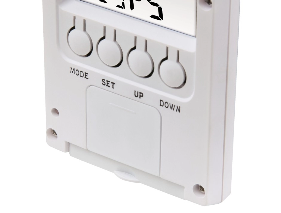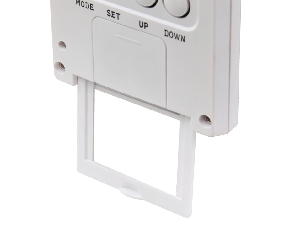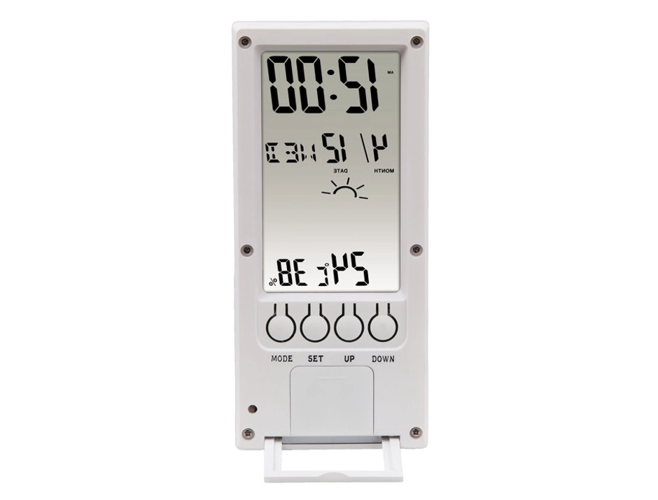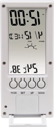 Idő, dátum és nap megjelenítésére alkalmas, valamint különböző hőmérsékleti egységek közötti váltás funkcióval.