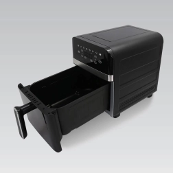 Az intuitív elektronikus panel 8 előre beállított programot kínál (hasábburgonya, csirkeszárny, hal, steak, garnéla, pizza, gomba, pirítós). Állítsa be pontosan a 60–200 °C hőmérsékletet és az 1–90 perces időt, és igazítsa a sütést saját igényeihez. A tapadásmentes kosár megkönnyíti a karbantartást, a mellékelt grillrács szilikon lábakkal pedig stabilitást és változatos elkészítési lehetőségeket biztosít.