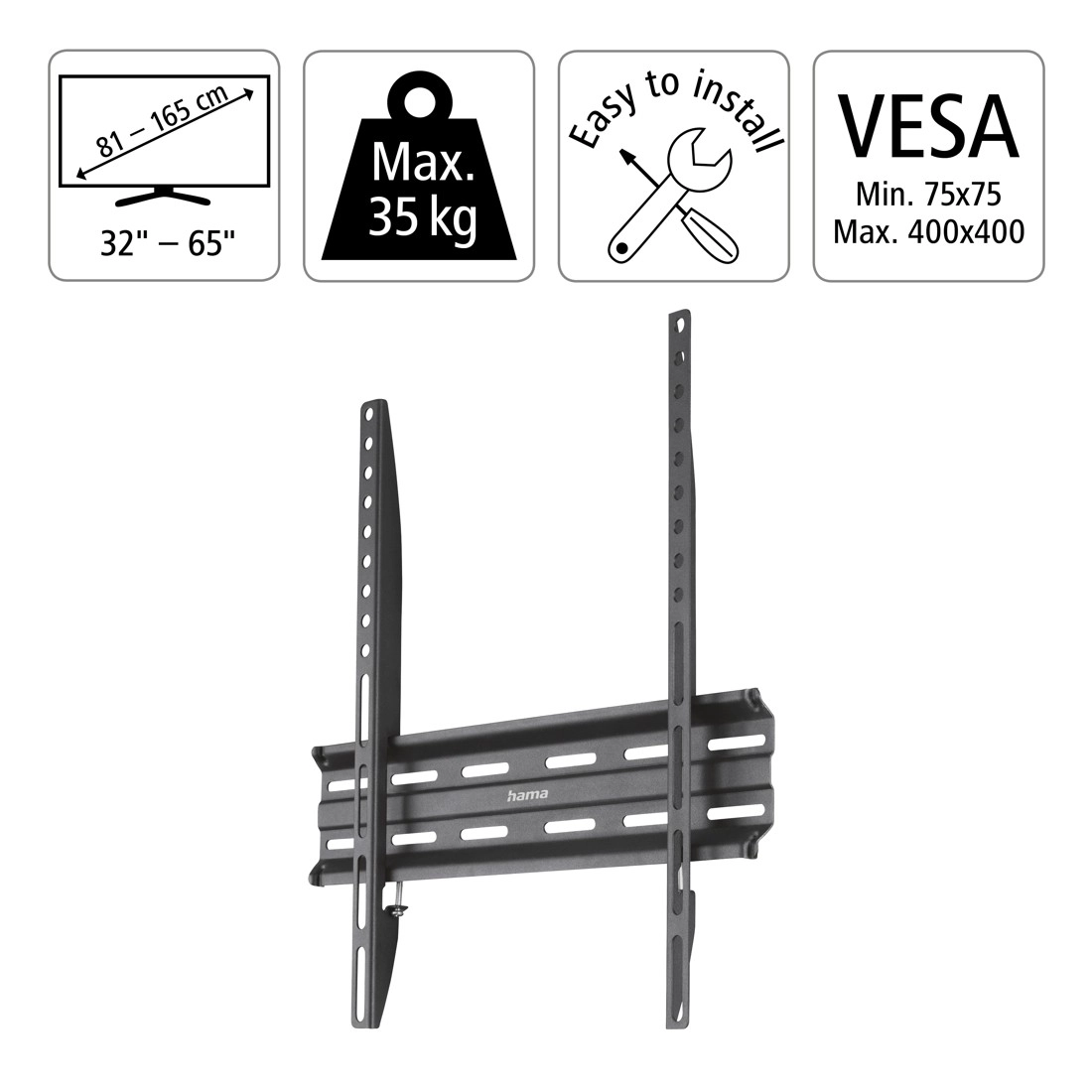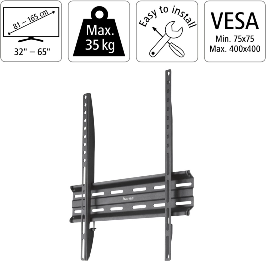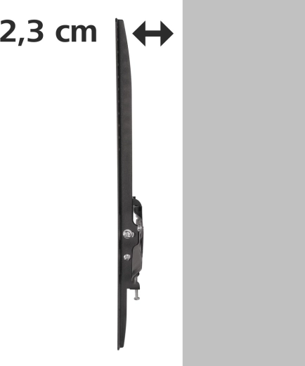 A Hama fali tartó ideális megoldás a televíziók biztonságos és esztétikus rögzítésére a falra. A fali távolsága mindössze 2,3 cm, a robusztus acélszerkezet stabilitást és elegáns megjelenést biztosít.