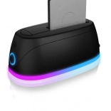 A Plug & Play és HotSwap funkcióknak köszönhetően a meghajtókat biztonságosan cserélheti működés közben is, míg a visszafogott LED ambient világítás jelzi a tápellátást és az aktivitást. A csatlakoztathatóság USB‑C és USB‑A felületen is elérhető (a mellékelt kábel/adapter függvényében), így egyszerűen kapcsolhatók modern laptopok és régebbi PC-k.