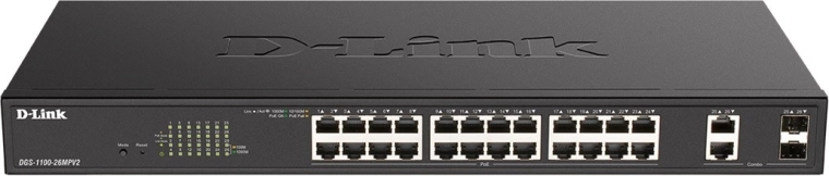 A DGS-1100 sorozat olyan kapcsolókat is tartalmaz, amelyek nagy PoE teljesítménykerettel rendelkeznek az IP-telefonok, vezeték nélküli hozzáférési pontok és IP-kamerák egyszerű telepítéséhez.