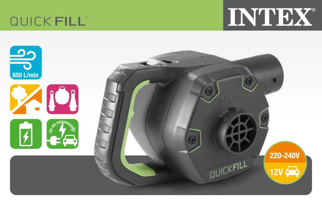 Praktikus elektromos pumpa gyors felfújáshoz és leeresztéshez, 220–240 V hálózatról vagy 12 V-os szivargyújtóról működtethető. A csomag tartalmaz 3 univerzális fúvókát a széles kompatibilitásért. Ideális matracokhoz, medencékhez, csónakokhoz és játékokhoz – kényelmes használat otthon és útközben is.