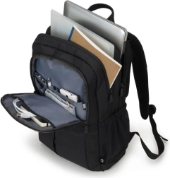 A zárható laptoprekesz kettős védelmet biztosít a 15–17,3 hüvelykes eszköznek: nagy sűrűségű habszivacs (HDF) oldalpárnázással és megbízható rögzítéssel az elasztikus biztonsági pántnak köszönhetően. A tágas főrekesz elegendő helyet kínál dokumentumoknak vagy más szükséges tárgyaknak. A legfeljebb 12,9"-os tablet számára kialakított rekesznek és a fejhallgató kíméletes szállítását biztosító pántnak köszönhetően útközben is teljes biztonságban tudhatja társait. A tágas elülső zseb rendet tart a funkcionális rekeszek révén az okostelefon, a powerbank, a tollak és egyéb mobil kiegészítők számára. A külső zsebekben elhelyezhető a vizespalack és az esernyő, így hely takarítható meg a hátizsákban. Az ergonomikus hátpárnázás, a kényelmes vállpánt és a hátoldali bőröndrögzítő pánt gondoskodnak a kényelemről, akár munkába, egyetemre, akár hosszabb utakra viszi magával a hátizsákot.