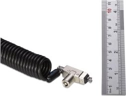 - Az önfelcsévélő szénacél kábel könnyen szállítható és erős; 1,8 m-re meghosszabbítható, 76,2 mm-re összehúzható. A műanyag borítás védi a felületet. Az 5 mm-es kulcsrendszer közös a legújabb Kensington záraknál, így elegendő egy kulcsrendszert kezelni.