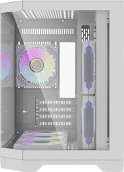 A ház hat előre telepített RGB ventilátorral érkezik, amelyek nemcsak kiváló hűtést biztosítanak, hanem stílusos gamer kinézetet is kölcsönöznek. Élvezze az RGB világítás testreszabásának lehetőségét és a hűtőrendszerek széles körű szerelési opcióit.