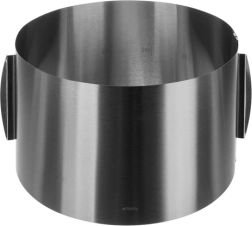 Professzionális rozsdamentes acél tortakeret fokozatmentesen állítható 16–30 cm átmérővel és extra 20 cm magassággal. A masszív kapcsoknak köszönhetően stabil, tömít, és ideális magas, többrétegű tortákhoz. Szerszám nélkül könnyen állítható, minden sütőbe illik, és mosogatógépben mosható.