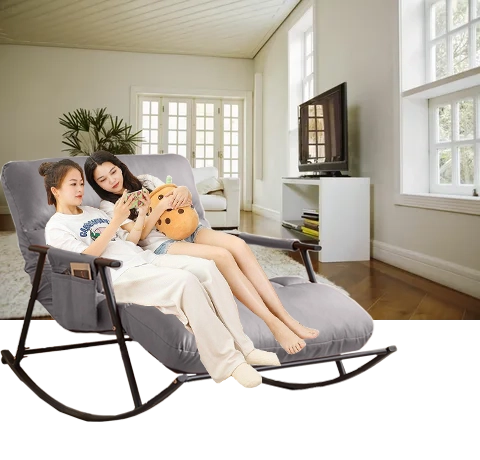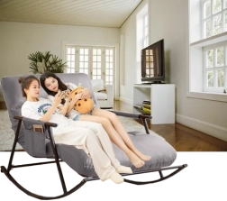 Az elegáns, szürke, hintázó kétszemélyes fotel a modern dizájnt tartós szerkezettel ötvözi. A puha, steppelt párnák, prémium PP Cotton töltettel támaszt nyújtanak a hát és a lábak számára olvasáshoz, tévénézéshez és kettesben való relaxáláshoz. A fekete fém váz egyenletes és biztonságos hintázást garantál, amelyet a nappaliban és a fedett teraszon is imádni fog.