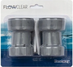 Két csatlakozóból álló teljes szett a pumpa és a medence csatlakozásához, minden szükséges része benne van.