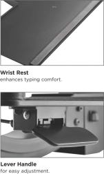 Alakítson ki ergonomikus munkaállomást az asztallap alá szerelhető billentyűzettálcával, amely közvetlenül az asztal aljára kerül. A széles beállítási tartománynak köszönhetően könnyedén személyre szabhatja a magasságot, dőlést és elfordítást, hogy ülve és állva is kényelmes legyen a gépelés, és csökkenjen a váll- és csuklófeszültség.