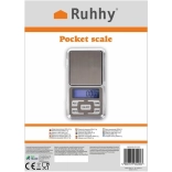 A kompakt RUHHY zsebmérleg 0,1 g pontosságot és akár 500 g teherbírást kínál, ideális ékszerekhez, érmékhez, gyógynövényekhez és gyógyszerekhez. Háttérvilágítású LCD kijelzővel, TARE funkcióval, többféle mértékegységgel és automatikus kikapcsolással rendelkezik. A védőfedélnek és a 2× AAA táplálásnak (a csomagban) köszönhetően a készülék azonnal használatra kész a kicsomagolás után.