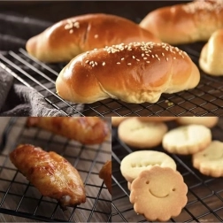 A megemelt lábak és a sűrű háló biztosítják, hogy a pékáru minden oldalról egyenletesen hűljön, páralecsapódás és elázás nélkül.