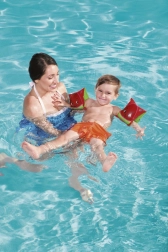 Az úszókarok könnyen felfújhatók és leereszthetők, kevés helyet foglalnak a táskában, és készen állnak a medencéhez, tóhoz vagy a tengerhez. A nem kívánt levegővesztés ellen védő szelepeknek köszönhetően játék közben végig tartják a formájukat.