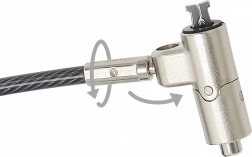 A zár feje forgatható és billenthető, így a kábelt szűk helyeken is könnyű elvezetni, és rendet tarthat az asztalon.
