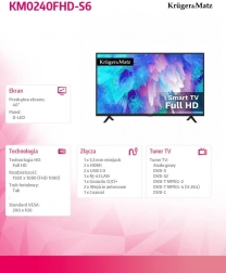 A DVB‑T2 és DVB‑S2 tunerekkel, valamint a H.265/HEVC támogatással a jelenlegi és jövőbeni sugárzásra is felkészült, külső set‑top box nélkül. A bőséges csatlakozókínálat megkönnyíti a konzol, set‑top box, hangrendszer és külső adathordozók csatlakoztatását. A karcsú dizájn két stabil talppal remekül illeszkedik a modern enteriőrbe, vagy falra szerelhető VESA tartóval.