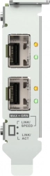 A QNAP QXG-10G2SF-X710 professzionális hálózati kártya két SFP+ (10G/1G) porttal, amely nagysebességű 10GbE csatlakozást biztosít munkaállomásokhoz és NAS szerverekhez. A nagy passzív hűtőbordának köszönhetően teljesen ventilátor nélkül működik, így zajérzékeny környezetekbe is ideális.