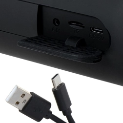 Bluetooth 5.0 stabil kapcsolattal akár 10 m hatótávig, lejátszás SD kártyáról és AUX-on keresztül. Háttérvilágított gombok és USB‑C a gyors töltéshez.