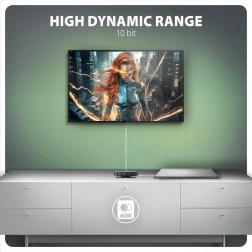 - Videó: HDMI akár 4K/60 Hz, 2K/144 Hz, 1080p/240 Hz; HDR, HDCP 1.4/2.2