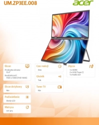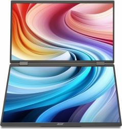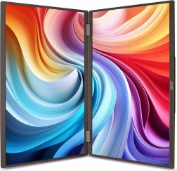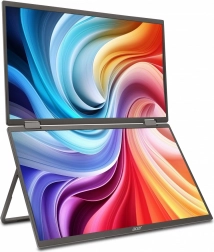 Az ACER hordozható, kétképernyős 16''-os monitora a két kijelző kényelmét nyújtja kompakt, mobil kiszerelésben. Az okos csuklós állványnak köszönhetően pillanatok alatt felállíthatod az asztalon, beállíthatod az ideális szöget, és azonnal több helyet kapsz munkához, alkotáshoz és szórakozáshoz.