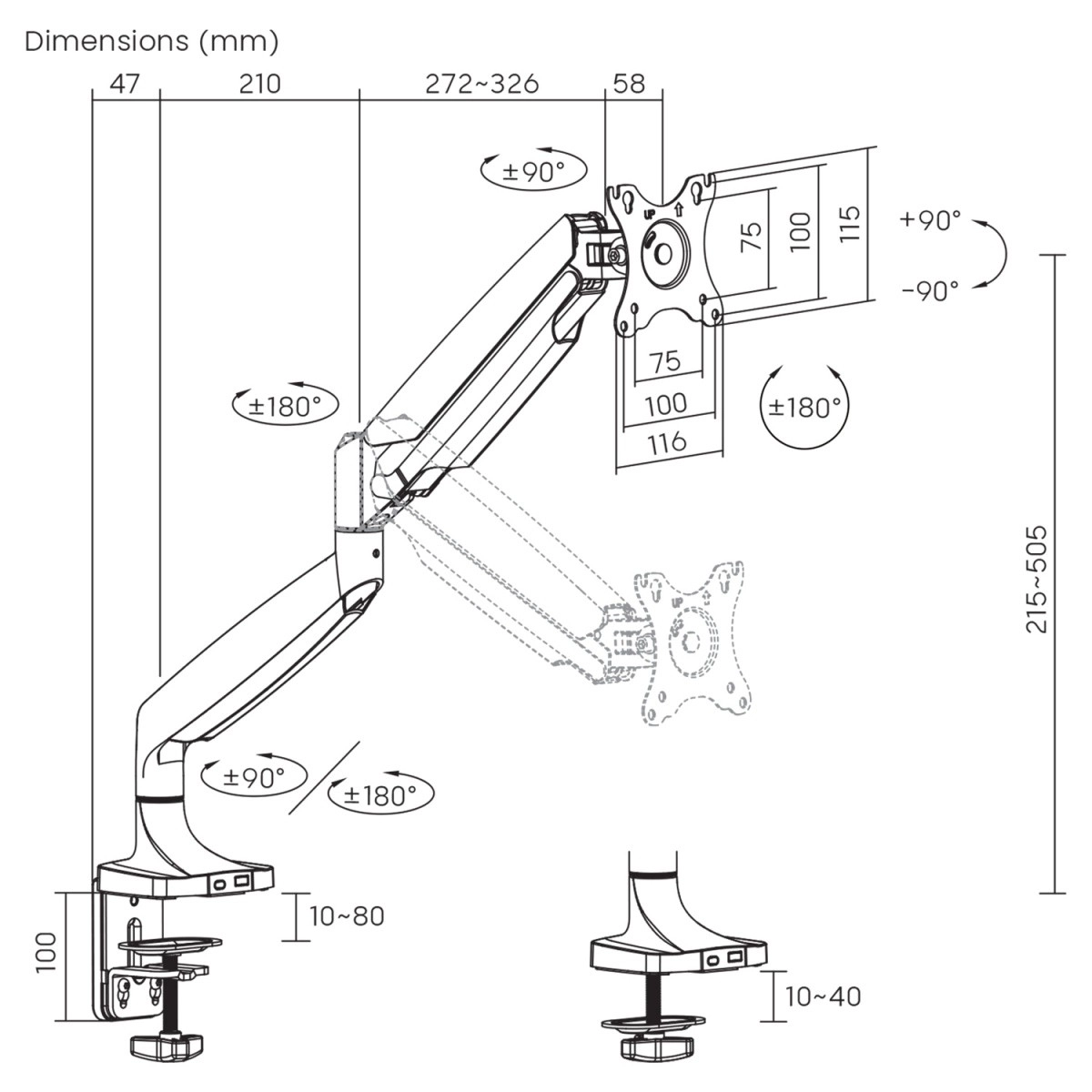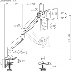 Univerzális Maclean monitor tartó, 17"–45" képátlójú monitorokhoz, legfeljebb 16 kg teherbírással. A tartó kiváló ergonómiát és testreszabhatóságot kínál a gázrugónak köszönhetően, amely lehetővé teszi a dőlésszög, az elfordítás és a magasság folyamatos beállítását.