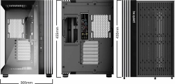A nagy, áttetsző elülső és oldalsó panelek nagyszerű panoráma kilátást biztosítanak az összes számítógép komponensre.