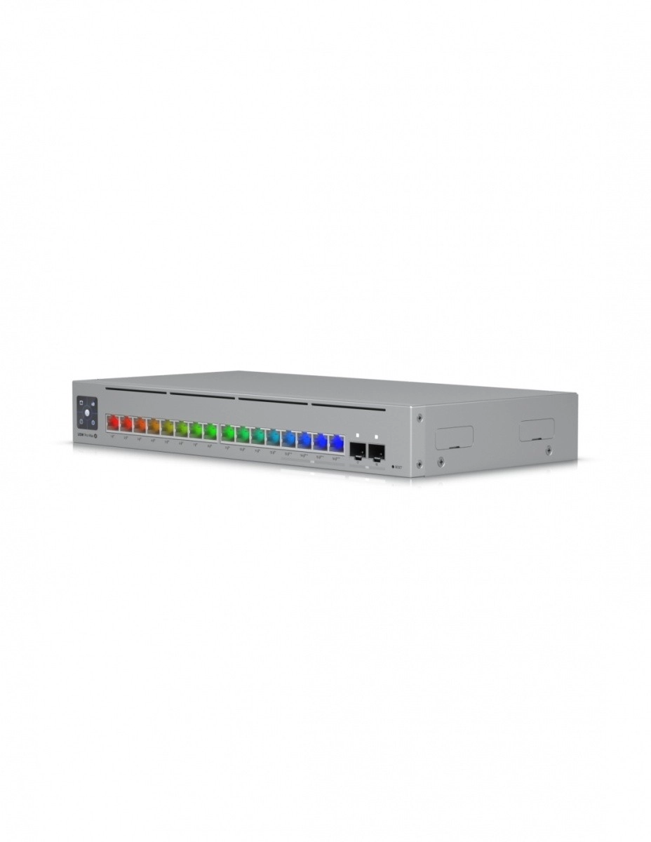Az Ubiquiti USW Pro Max 16 PoE megbízható kapcsoló modern hálózatokhoz, portonkénti intelligens Etherlighting háttérvilágítással, amely megkönnyíti a port, a sebesség/link állapot és a hozzárendelt VLAN azonosítását. Négy 2,5 GbE PoE++ portot kombinál nagy teljesítményű eszközökhöz és tizenkét GbE PoE+ portot kamerákhoz, AP-khez és IoT-hez, összesen 180 W PoE kerettel.