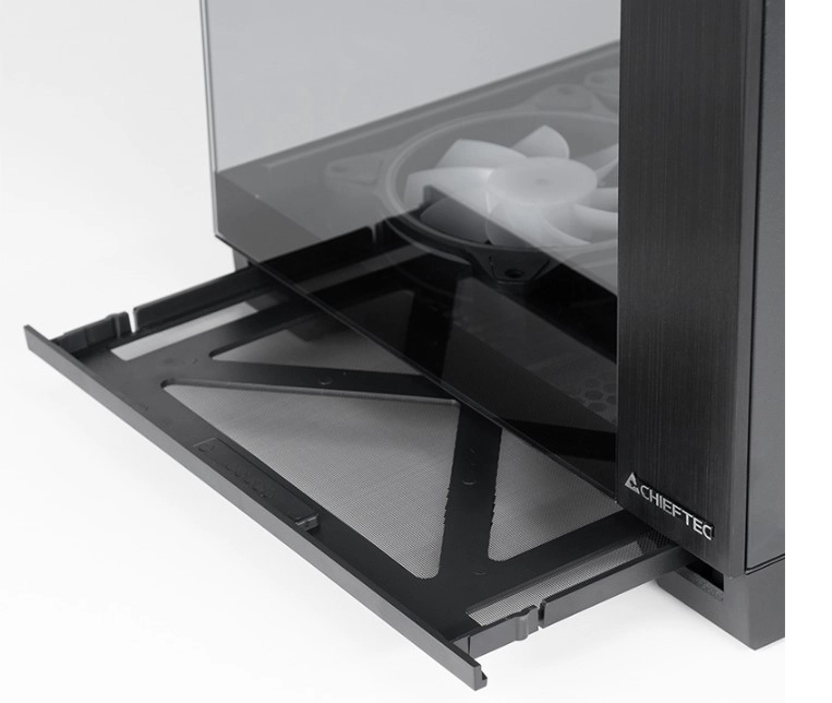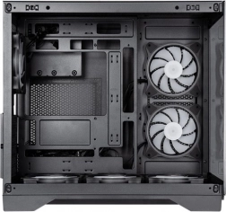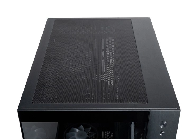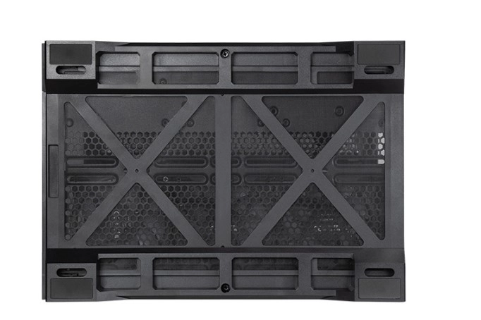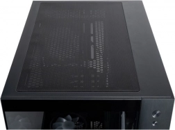 Öt fordított légáramlású lapátkialakítású ventilátor gondoskodik a hatékony beszívásról az oldalak és az alj felől. Támogatás 360 mm-es radiátorokhoz felül és alul, valamint 240 mm-hez az alaplap mellett.