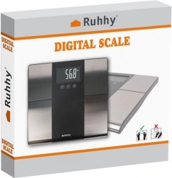 A RUHHY okos analitikus személymérleg pontos képet ad a testedről: 5–225 kg testsúly, BMI‑mérés, testzsír, víz és izomtömeg. Áttekinthető LCD‑kijelzővel, akár 10 felhasználói profillal intelligens felismeréssel és egyszerű kezeléssel (SET/UNIT gombok). Tartós konstrukció üvegből és ABS‑ből, automatikus kikapcsolás és kg/lb/st egységválasztás az egész család kényelmes használatához.