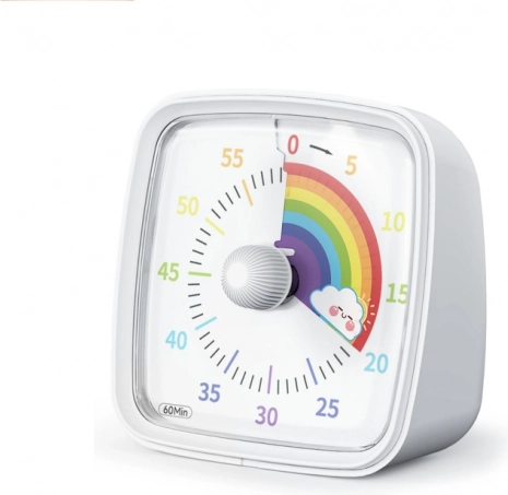 Lépjen be az idő tanulásának világába egy stílusos időzítővel, amely a funkcionalitást vonzó dizájnnal ötvözi. Ez a modern, fehér riasztós időzítő szórakoztató és hatékony módot kínál a gyerekeknek az idő fogalmának elsajátítására.