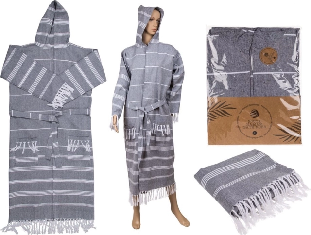 A török hamam fürdők által inspirált fürdőköpeny a mindennapi fürdés, szaunázás vagy gyógyfürdő látogatása után ideális társa. A köpeny jellemzői ideális választássá teszik: