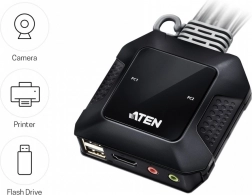 Kétportos USB és 4K HDMI KVM kapcsoló hatékony irányítást biztosít két számítógép számára egyetlen munkállomásról. Kínál: