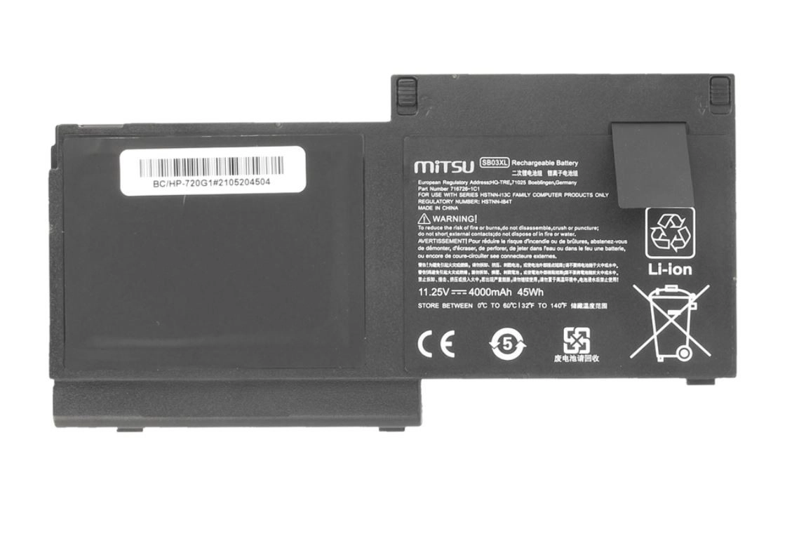 Megbízható MITSU csereakkumulátor HP EliteBook 720, 725 és 820 G1/G2 notebookokhoz, amely valódi 45 Wh kapacitást, modern A osztályú Li–Ion cellákat és fejlett túltöltés, túlmelegedés és rövidzárlat elleni védelmet kínál. A alacsony önkisülésnek és a memóriaeffektus hiányának köszönhetően hosszabb üzemidőt és stabil teljesítményt nyújt kedvező áron.