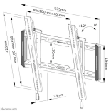 A NEOMOUNTS dönthető TV-tartó 32–65" képernyőkhöz masszív fém kivitelben készül, legfeljebb 60 kg teherbírással, és a faltól mindössze 3,3 cm vastagsággal. A legfeljebb 12°-os döntésnek köszönhetően könnyen beállítható az optimális betekintési szög. A VESA 100×100 – 400×400 kompatibilitás széles körű szerelési lehetőségeket biztosít.