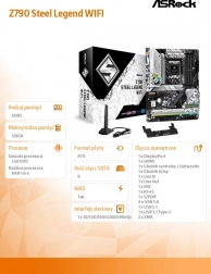 ASRock Z790 Steel Legend WiFi egy nagy teljesítményű alaplap, amelyet igényes játékosok és szakemberek számára terveztek. Támogatja a legújabb 13. és 12. generációs Intel Core processzorokat, fejlett hűtési és bővítési lehetőségeket kínál M.2 foglalatok és SSD támogatásával.