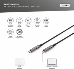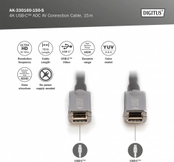 Ez az aktív AOC audio-video kábel USB-C típusú csatlakozóval tökéletes választás veszteségmentes audió és videó továbbítására nagyobb távolságokon. Hibrid szerkezet réz és optikai szálakkal minimalizálja az elektromágneses interferenciát és magas minőségű átvitel biztosít 4K/60Hz felbontás mellett. Könnyű súlya és rugalmassága egyszerű elhelyezést tesz lehetővé bármilyen környezetben, legyen az otthon vagy iroda.
