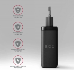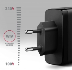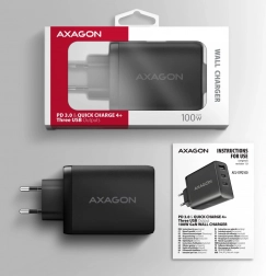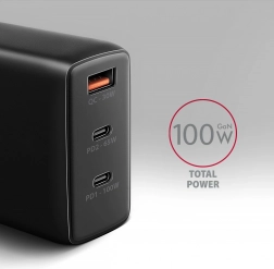 Az Axagon ACU‑DPQ100 univerzális töltő legfeljebb 100 W teljesítményt kínál, és egyszerre képes táplálni egy laptopot, telefont és fülhallgatót. A két, mindkét oldalon csatlakoztatható USB‑C port Power Delivery‑vel és a klasszikus USB‑A Quick Charge‑csal a lehető legnagyobb töltési sebességet biztosítják. A modern GaN technológia nagyobb hatásfokot és kisebb méretet hoz – ideális megoldás utazáshoz és az íróasztalra is.