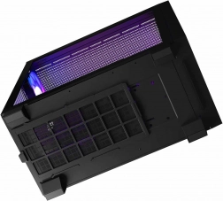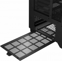 - Moduláris és szervizbarát: szerszám nélküli bepattintható oldallapok, kivehető szűrők, csavarozható PCI takarólemezek és a GPU függőleges beszerelésének támogatása.