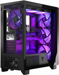 A VOLCANO Perun Apex ARGB egy elegáns midi torony mesh előlappal és edzett üveg oldallappal, amely csúcsminőségű légáramlást, 4× 140 mm-es ARGB ventilátort vezérlővel, E‑ATX támogatást és USB‑C csatlakozót a felső panelen kínál. A porszűrőknek, a gyorskioldós oldallapoknak és a GPU támasznak köszönhetően könnyedén építhető erős és tiszta gamer konfiguráció.