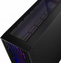 - Erős hűtés gyárilag: 3× 140 mm ARGB elöl + 1× 140 mm ARGB hátul, bővíthető a tetőn és a PSU alagút felett.