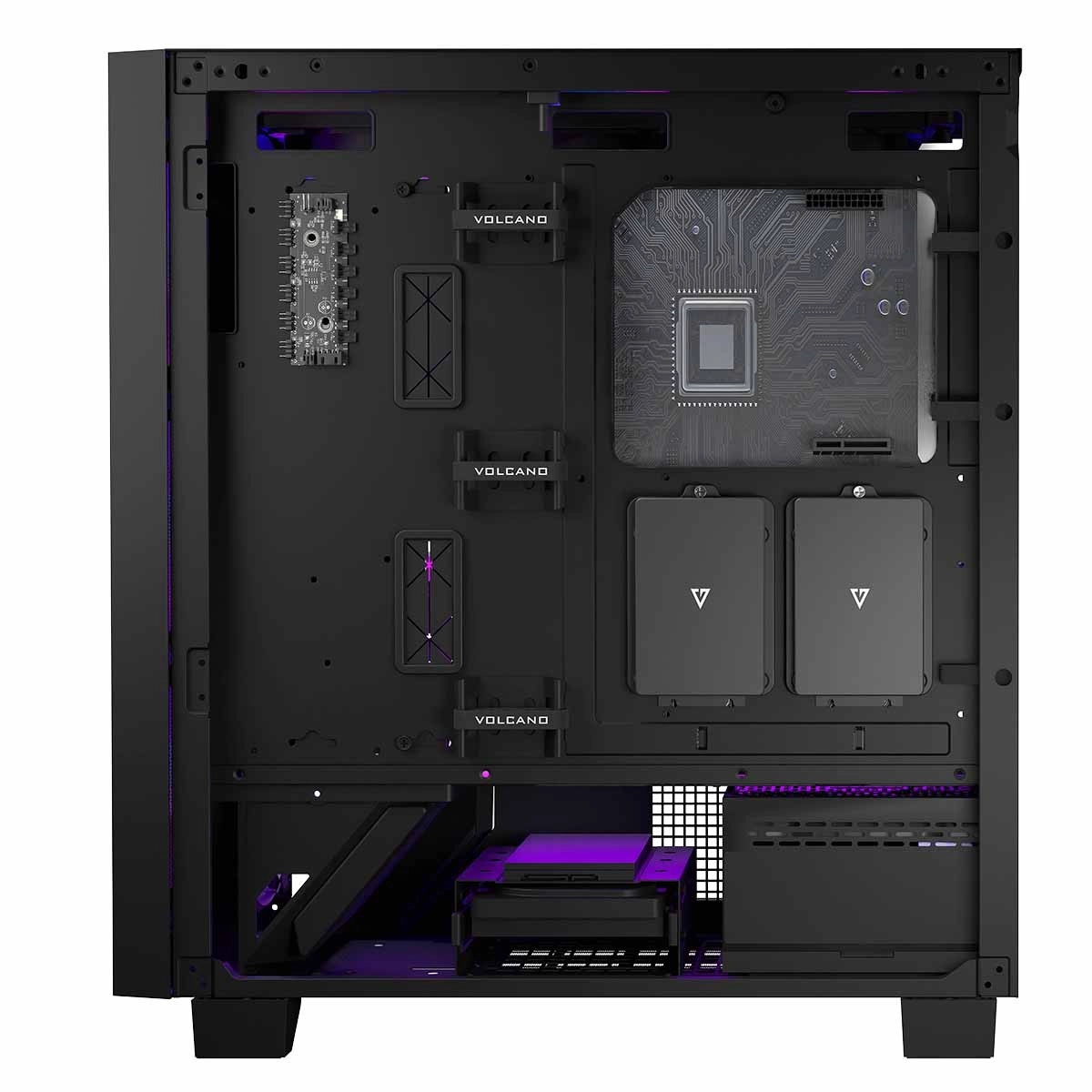 Villámok ihlette dizájn, átgondolt szellőzés és hely csúcskategóriás komponenseknek – ez a VOLCANO Perun Apex ARGB. A mesh előlapi panel és a négy előre telepített 140 mm-es ARGB ventilátor intenzív hűvös levegő beáramlást biztosít, míg az edzett üveg oldallap megadja a gépednek a megfelelő stílust. A felső I/O panel USB‑C-vel és 2× USB 3.0-val kényelmes mindennapi használatot nyújt.