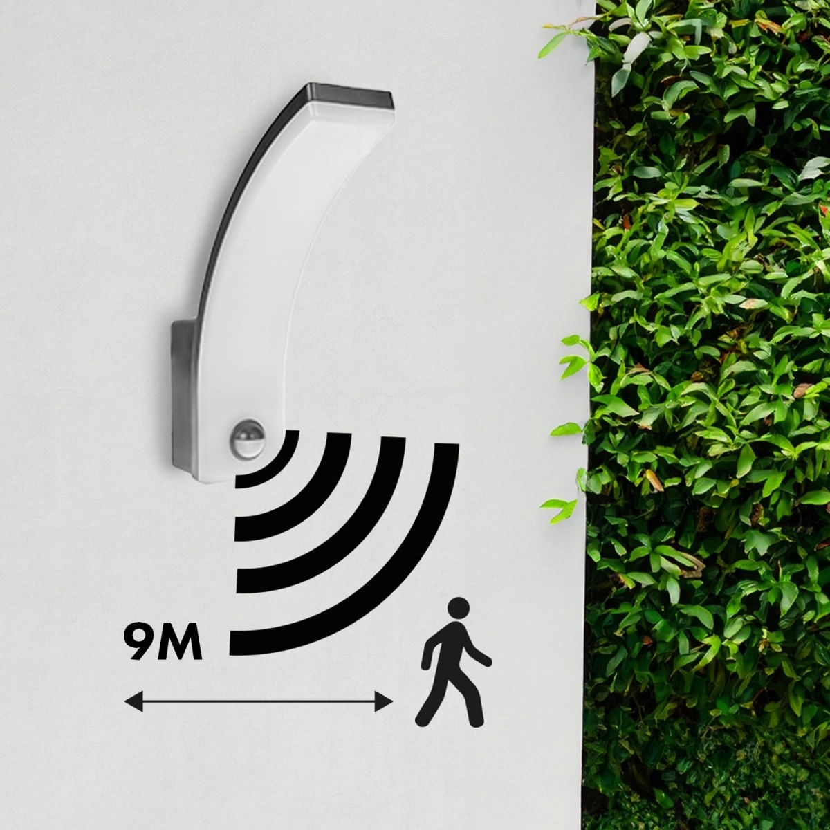 Az integrált PIR érzékelő automatikusan felkapcsolja a lámpát mozgás észlelésekor – ideális bejáratokhoz, járdákhoz és felhajtókhoz.