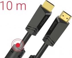 Élvezze az éles és folyamatos képet a 10 m hosszú HDMI 2.0b kábellel, amely akár 4096 × 2160 (4K) felbontást és HDR technológiát is kezel az élénk színekért, nagyobb kontrasztért, fényerőért és részletességért. Az aranyozott csatlakozók és a minőségi árnyékolás stabil, tiszta, zavarmentes jelet biztosítanak.