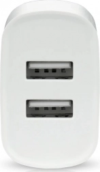 Ez a töltő két USB-porttal rendelkezik, ami lehetővé teszi több eszköz egyidejű töltését, legfeljebb 2,4 A összteljesítménnyel.