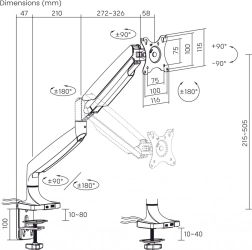 A gázos asztali monitor tartó úgy lett tervezve, hogy megfeleljen a nagyobb és nehezebb monitorok, köztük az ívelt modellek igényeinek. Lehetővé teszi a képernyő szögének és helyzetének egyszerű beállítását szerszám nélkül. Rendelkezésre áll kábelrendező rendszer, amely megakadályozza a monitor akaratlan elmozdulását.