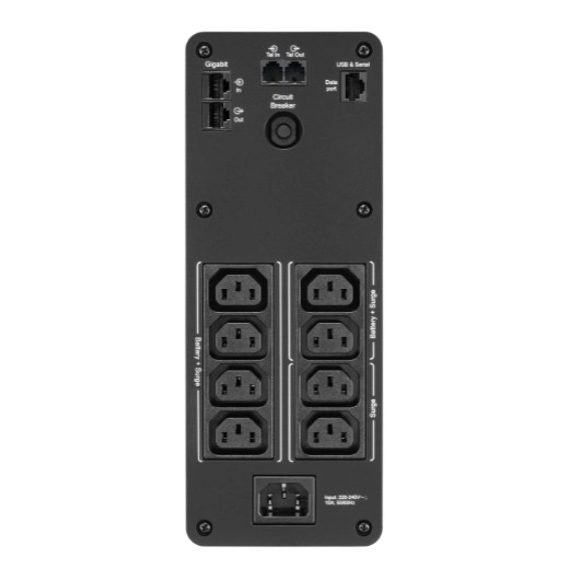 Funkciók és előnyök:- Áramköri védett, de akkumulátoros tartás nélküli aljzatok – kiegészítő eszközök védelme túlfeszültségek ellen az akkumulátor terhelése nélkül.