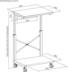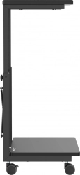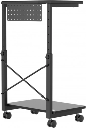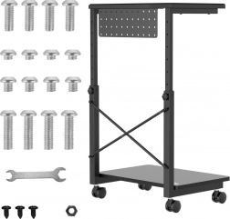 Ez a gurulós állvány ideális azok számára, akik gyakran kell változtatniuk gépeik helyzetét vagy korlátozott munkaterülettel rendelkeznek. Az állítható magasság 550 és 850 mm között lehetővé teszi a különböző asztalokhoz és munkahelyekhez való alkalmazkodást, ami jelentősen növeli rugalmasságát. Továbbá, a praktikus polc kiegészítők tárolására, vagy akár laptop alátétként is használható.